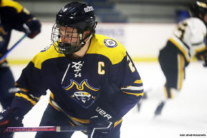 UMASS-Dartmouth Corsairs‘ graduate defenseman Jake Maynard(2) looks to break college high marks tying his 2 goal mark already in 12 games and 8 assists is a little ways from 19 last season, but is certainly still achievable.