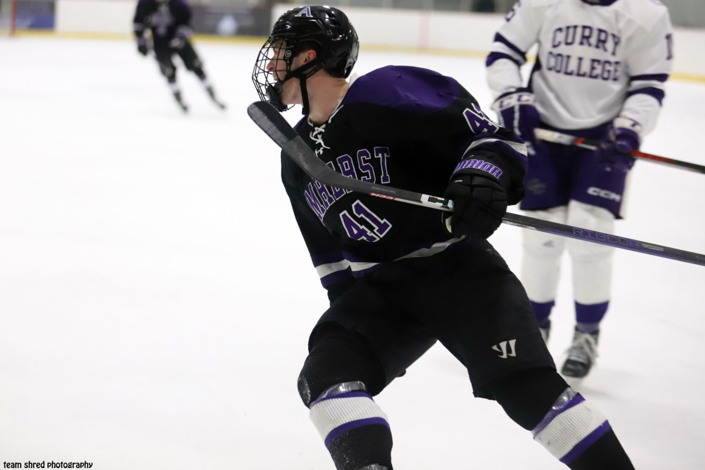 Amherst College Mammoths‘ junior left wing Matt Toporowski(41) got the 4-3 game-winner in overtime away against Curry College Colonels at Canton Ice House on a weekday afternoon back from break.