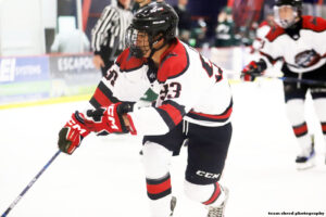 Providence Capitals‘ 2nd year right wing Joshua Coderre(15) takes junior highs scoring 9 goals and 17 assists in 46 EHL games last season to a 2025/2026 commit at Rivier University Raiders.