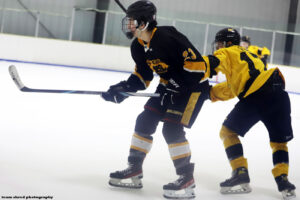 New Jersey Bears‘ 1st year defenseman Michael Benkovitz(22) takes an EHL explosion of scoring 18 goals and 19 assists in 45 games to a 2025/2026 commit at Arcadia University Knights.