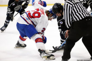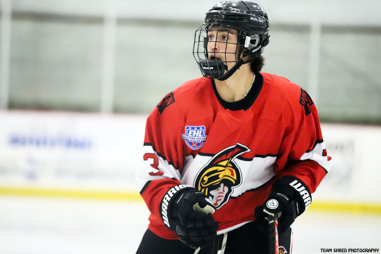Seacoast Spartans‘ 2nd EHL season right wing Kenny Maxwell(3) put up junior career high 20 goals and 22 assists in the last frame, then added another 4 points in 5 playoff matchups.