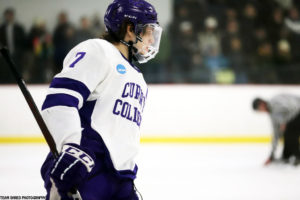 Curry College Colonels‘ Russian-born, graduating senior center Mark Zhukov(7) takes a D3 college career best 13 goals and 24 assists in 22 games last season to a 1st pro contract for 2023/2024 with Wichita Thunder.