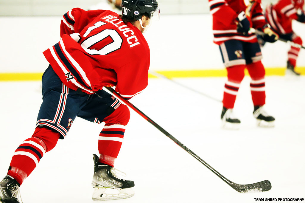 Adrian College Bulldogs‘ 2023/2024 commit, 2nd year Johnstown Tomahawks‘ center captain Ryan Vellucci(10) had an NAHL junior career year scoring 11 goals and 17 assist in 50 games last season.