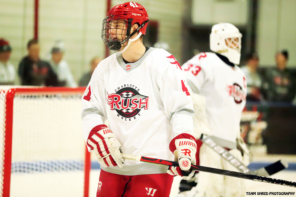 Charlotte Rush defenseman, Zach Gmerek(9) takes a 2nd year USPHL Premier best 2 goals and 19 assist to a Nichols College Bison commit for 2023/2024.
