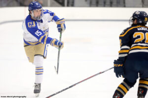 The 6′ 181 lbs. blue liner recorded a pretty impressive goal and 18 assists in NCAA Division 1 hockey games.