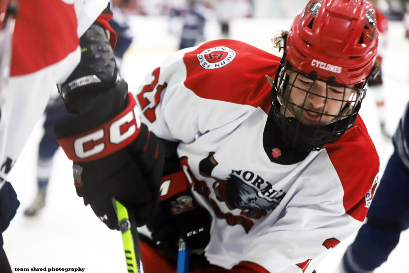 Northern Cyclones‘ 1st year left wing Nick Blanchette(21) takes 5 goals and 5 assists in 36 USPHL Premier games to a 2025/2026 commit at Franklin Pierce University Ravens.