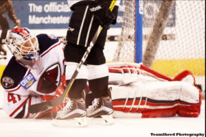 Undrafted, 6th year goaltender Adam Carlson(31) makes the easy decision to return for another, third season to tend net for Rapid City Rush.