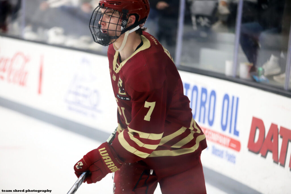 Boston College Eagles‘ senior defenseman Aidan Hreschuk(7) signs a 1st pro deal with Texas Stars for 2025/2026.