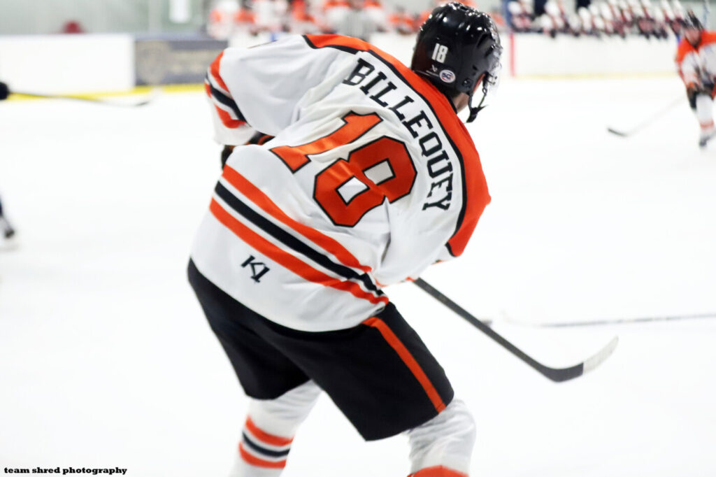 Danbury Hat Tricks‘ 1st year right wing, Alexis Billequey(18) has 5 goals and 18 assists in 20 NAHL games with his new team after a trade sent him over from Elmira Aviators, where he was also scoring well.
