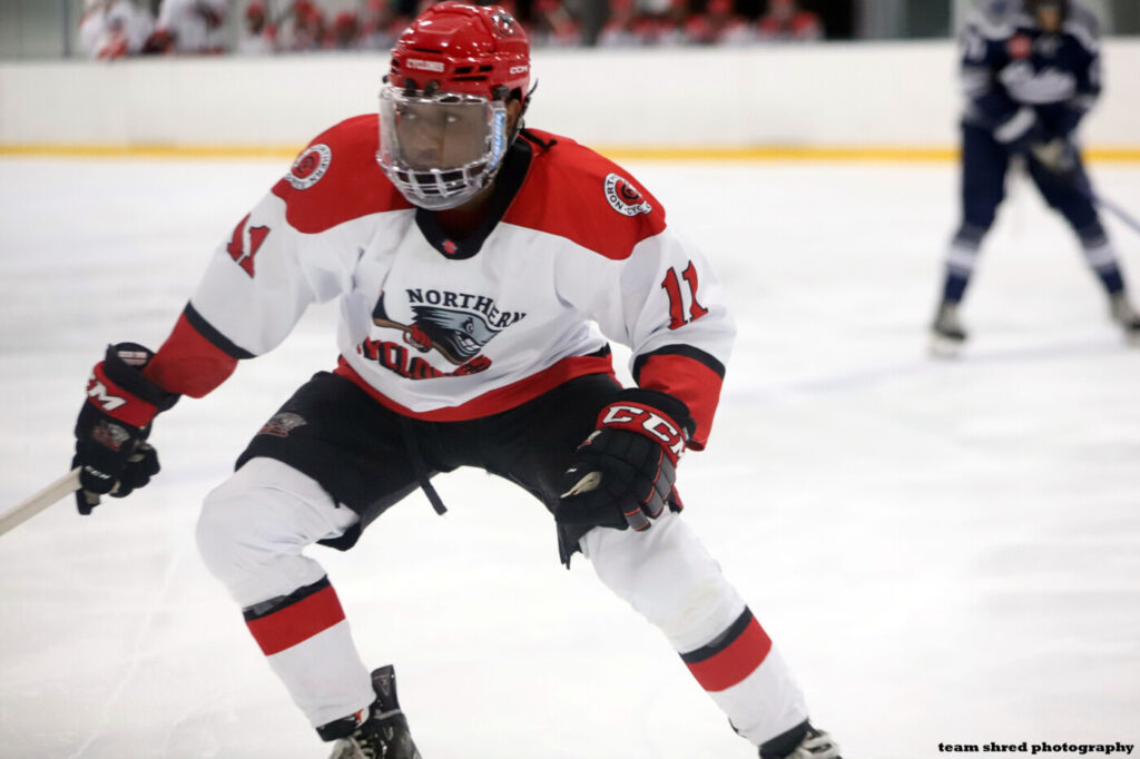 Northern Cyclones‘ 1st year USPHL Premier left wing Andrew White(11) takes a junior best 10 goals and 31 assists in 44 games to a 2025/2026 commit at Franklin Pierce University Ravens.