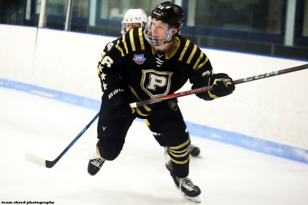 Providence Capitals‘ 1st year defenseman Anton Petrovskiy(36) has 3 goals and 6 assists in 36 EHL games, which he will take to a Lebanon Valley College Dutchmen commit for 2025/2026.