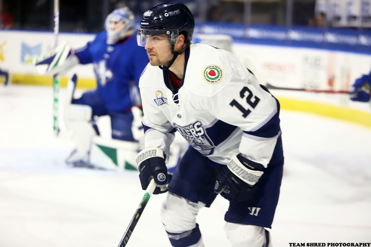 Worcester Railers‘ top scoring rookie center Brent Beaudoin(12) gets an invite up on loan to join Providence Bruins for at least the final few games of the 2021/2022 season after his team was eliminated from ECHL playoff contention.