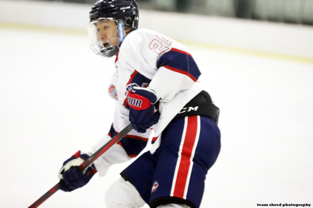 Boston Jr. Rangers‘ 1st year Hong Kong-born left wing Brian Tang(20) after scoring 8 goals and 12 assists in 25 USPHL/NCDC games commits to Skidmore College Thoroughbreds for 2025/2026.