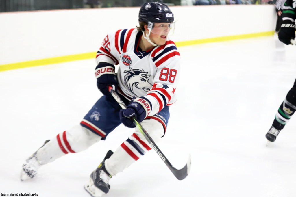 Ogden Mustangs‘ 1st year left wing Brody Simko(88) commits to college closer to home at Lebanon Valley College Dutchmen for 2024/2025.