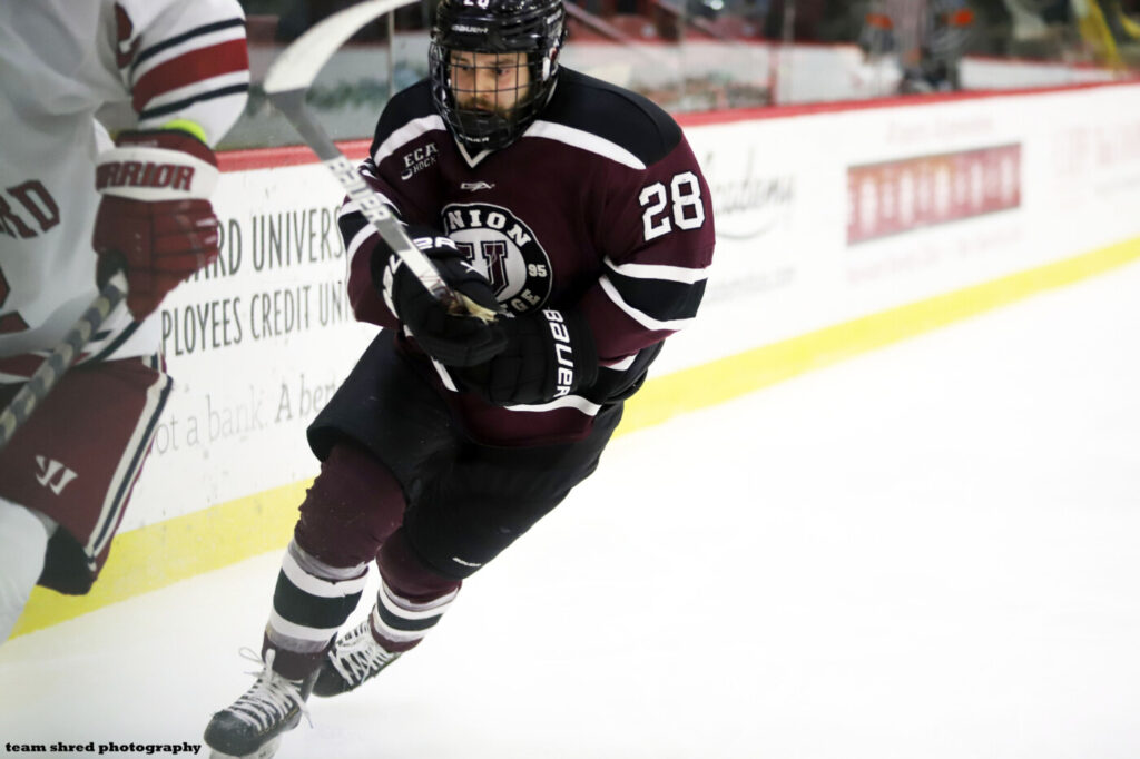 Union College Dutchmen senior right wing Caden Villegas(28) had a college best 22 assists in his final season.