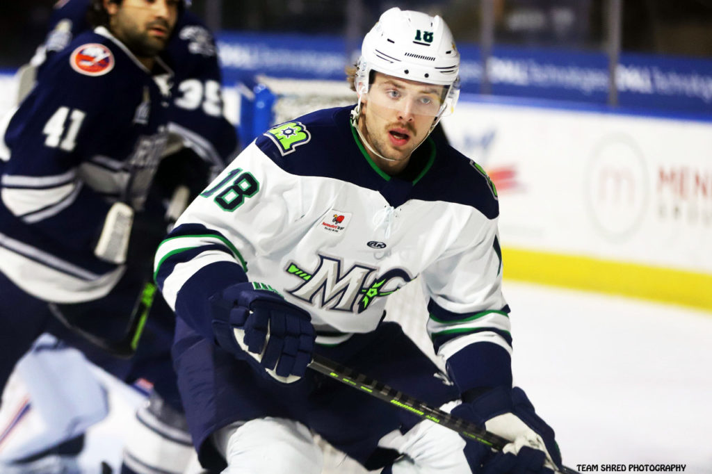 3rd year center Carter Johnson(18) was traded late last ECHL season from Wheeling Nailers to Maine Mariners, giving him a chance to make a deep playoff run after wracking up 13 points (4-9) in 14 games during the regular frame, then adding another 5 points in 6 games in the postseason.