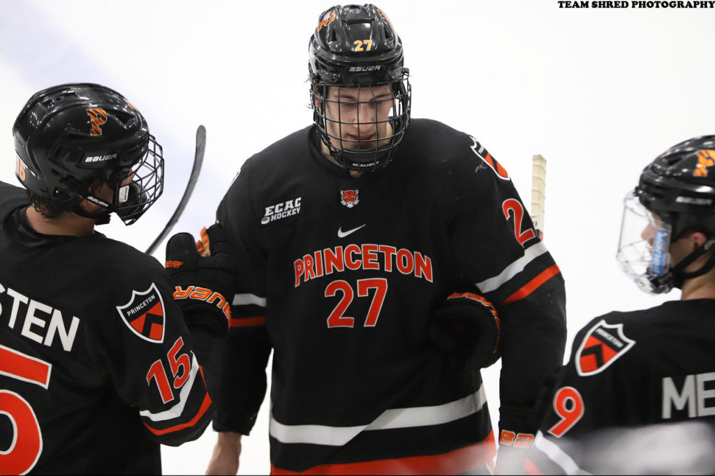 Pittsburgh Penguins jump quickly to sign Princeton University Tigers‘ graduating senior right wing Corey Andonovski(27) to a 2-year NHL entry level contract.