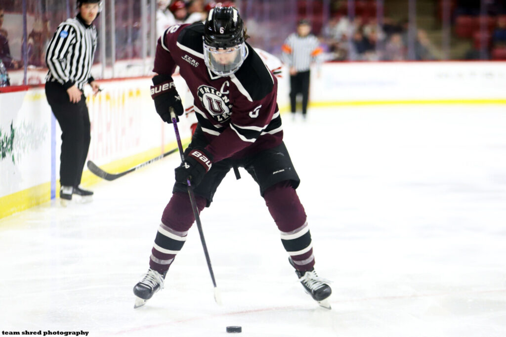 Union College Dutchmen senior, captain defenseman Cullen Ferguson(14) signs a 1st pro deal with Fort Wayne Komets, which yields a 1st ECHL goal and 1 assist in 7 games with a +5 rating.