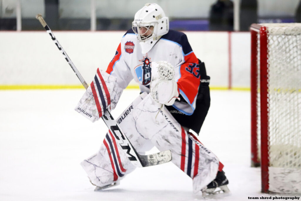 Islanders HC 1st year goaltender Daniel Heroux(33) had already been committed to University Of Vermont Catamounts before he arrived at the USPHL/NCDC team.
