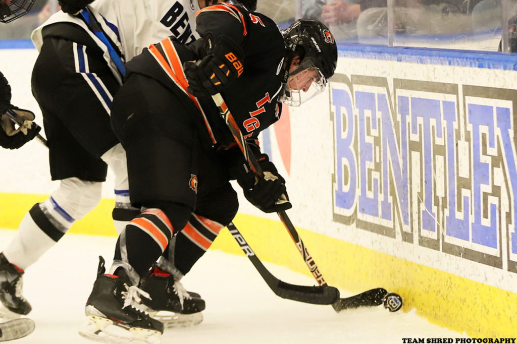 5th year Rochester Institute Of Technology Tigers‘ graduate captain, defensemanĀ Daniel Willett(19) has always put up either 20 or close to points per season, and came away from 2021/2022 with a college career best 5 goals.