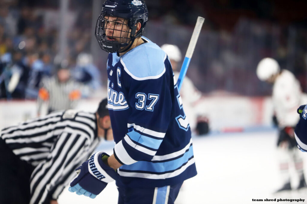 University Of Maine Black Bears‘ 2nd year, senior captain David Breazeale(56) signs a 1st pro deal with Wilkes-Barre/Scranton Penguins as tournament play finishes up for 2 games, no points and a +1 rating, then re-signs for an official AHL contract, his rookie season 2025/2026.