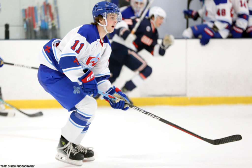 Maine Nordiques‘ 2nd year defenseman David Helledy(11) picks Bentley University Falcons for a 2024/2025 commit.