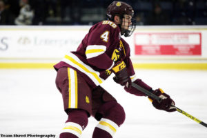 He is a Winnipeg Jets‘ 2nd round pick in the 2017 draft (#43 overall) and was signed to a three year entry level deal after completing a third, playoff cut short season at University Of Minnesota-Duluth Bulldogs, where he helped them win a pair of consecutive NCAA Championships.