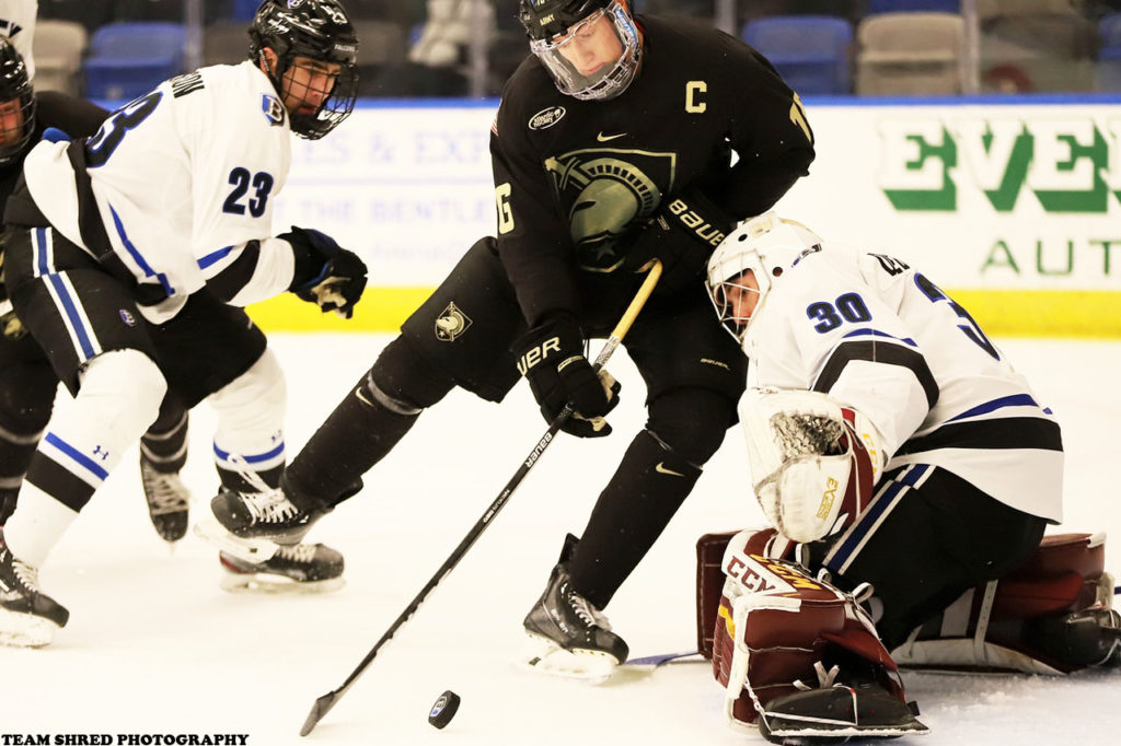 Army West Point Black Knights‘ senior, right wing captain Eric Butte(19) signed an ato to join Kansas City Mavericks.