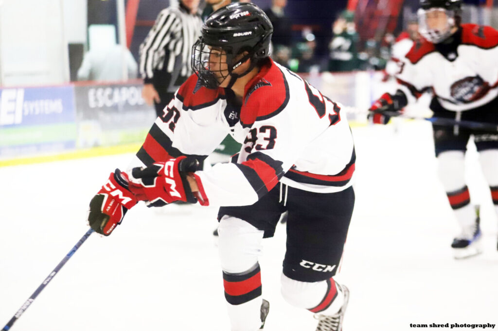 Express Hockey 3rd year center Hudson Perry(93) has scored nicely in his development with 28 points in 37 games after recording 33 in 45 in his 1st EHL year.