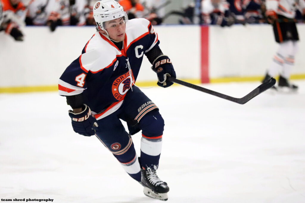 Northeast Generals‘ 2nd year, captain defenseman Jack DeMoura(4) chooses Albertus Magnus College Falcons for his 2025/2026 commitment.