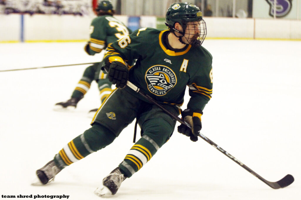 University Of Alaska-Anchorage Seawolves‘ assistant captain, senior left wing Jarred White(86) scores a moderate college best 3 goals and 5 assists in high 32 games played that he takes to a 1st pro contract in France2 with Les Diables Rogues de Valenciennes for 2025/2026.