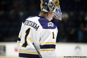 Undrafted, Finnish-born net minder Jere Huhtamaa(1) decides to head back home after two years with Merrimack College Warriors, signing with tier 2 Mestis TUTO Hockey.