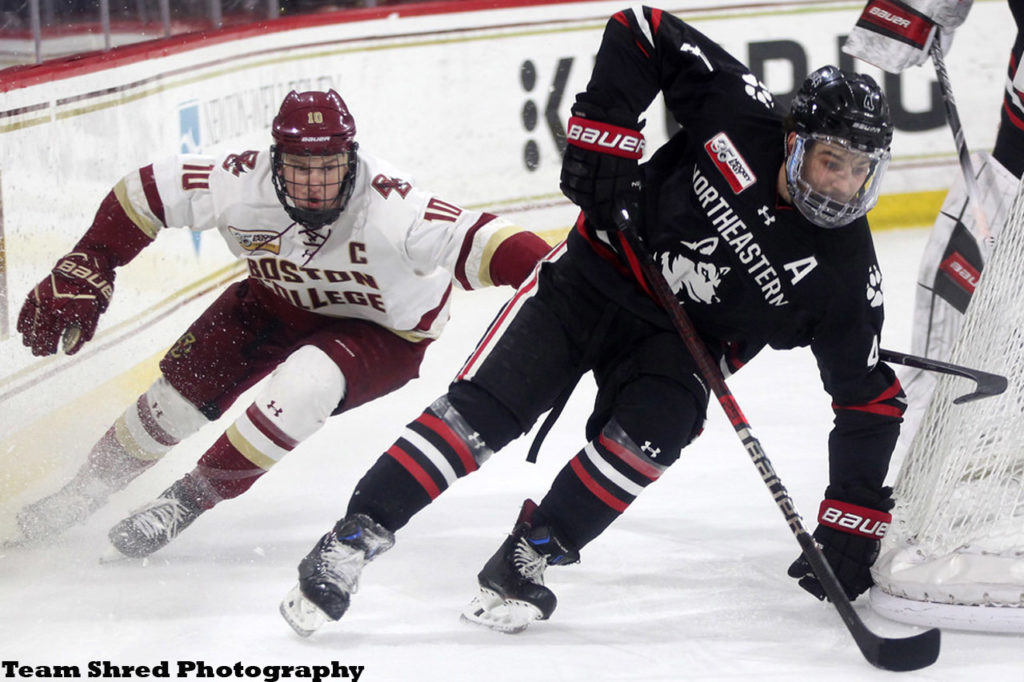 His college commitment to Northeastern University Huskies was made after a 2nd successful year with Central Illinois Flying Aces of the USHL, where he amassed 36 helpers, so he looks to be good at this.