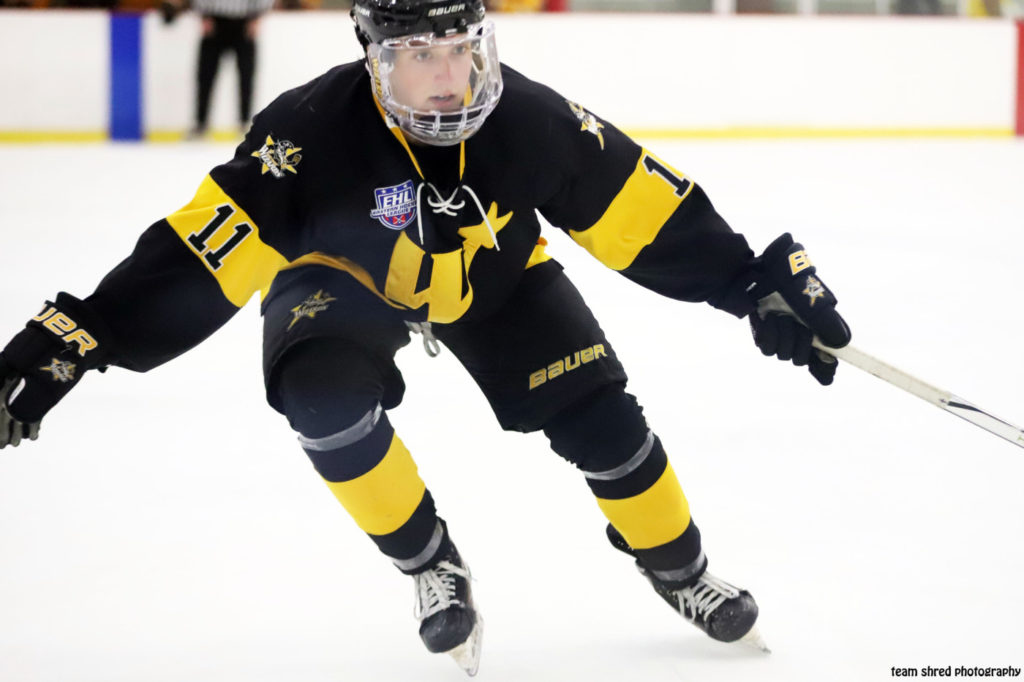 East Coast Wizards‘ 2nd year right wing Joe Fontaine(11) grab some clearly better EHL numbers, scoring 6 goals and 14 assists in 38 games to a 2024/2025 commit at the new D3 Keene State College Owls.