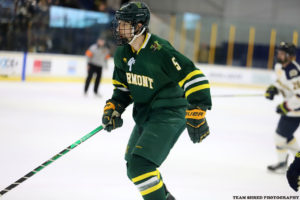University Of Vermont Catamounts‘ portal transfer from 3 years at Cornell University Big Red, senior defenseman Joe Leahy(5) has put up a career high 7 assists and 9 points in 24 NCAA Division 1 games.