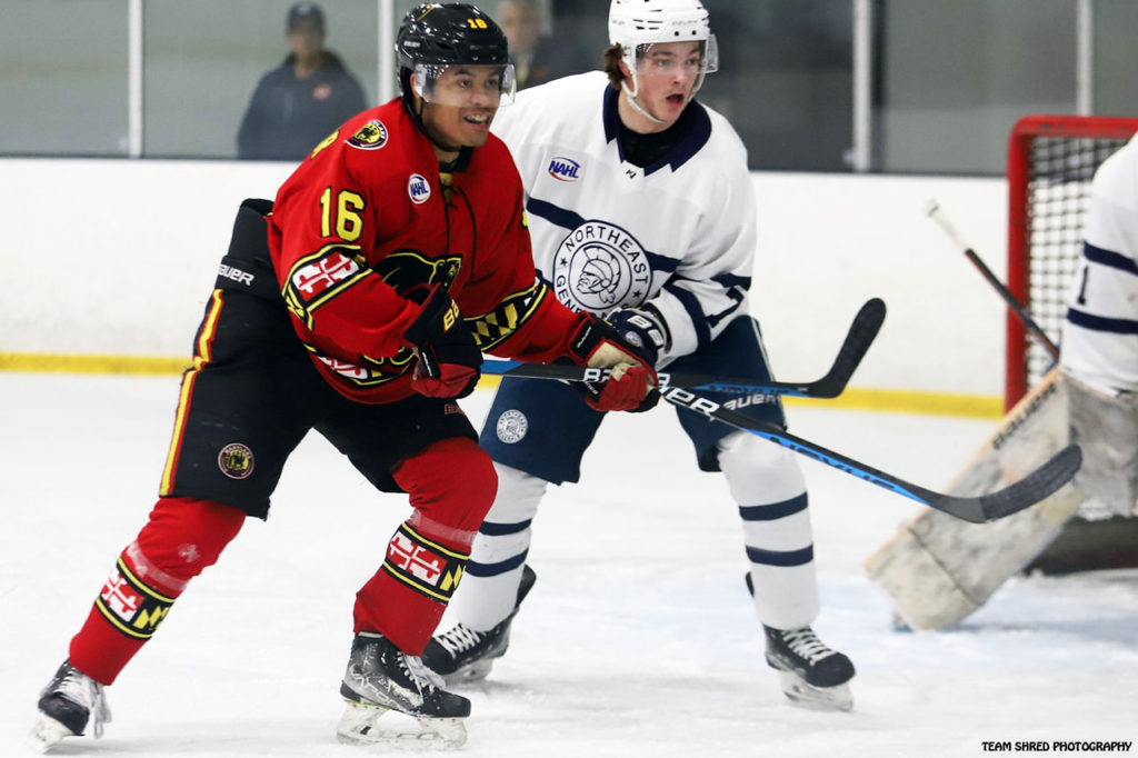 2nd year Maine Nordiques‘ left wing Kareem El-Bashir(16) is looking to blow the lid off NAHL scoring, commits to Army West Point Black Knights for 2024/2025.