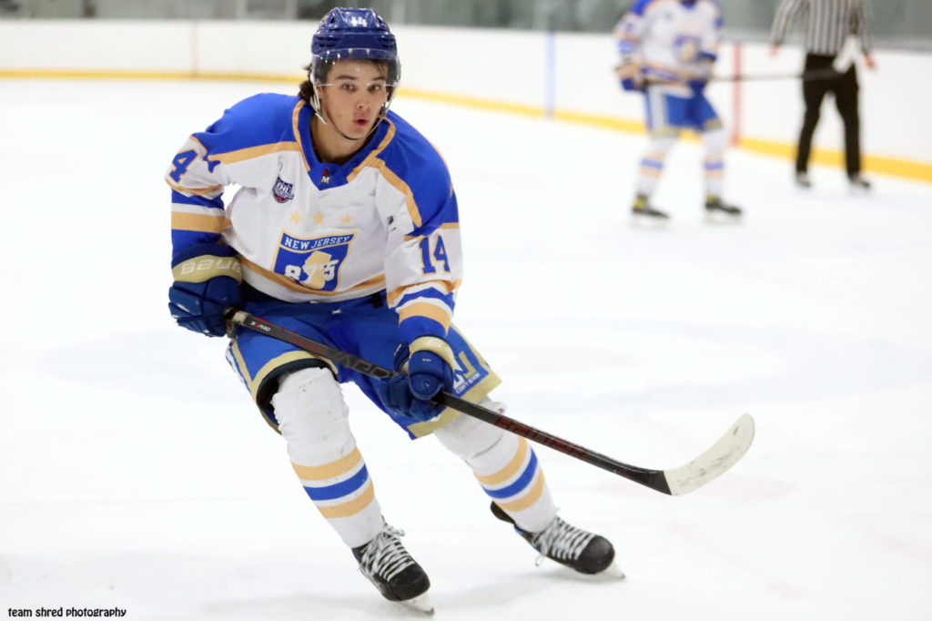 New Jersey 87’s 2nd year center Keaton Richards(14) commits to St. Anselm College Hawks for 2024/2025 after putting up a junior best 9 assists and 12 points in 31 EHL games this season.
