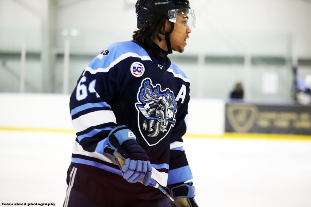 New Hampshire Mountain Kings‘ Swedish-born 2nd year left wing Kim Hilmersson(23) scored a junior best 23 goals and 24 assists in 54 NAHL games with a +10 rating that he takes to a 2025/2026 commit at Plymouth State University Panthers.