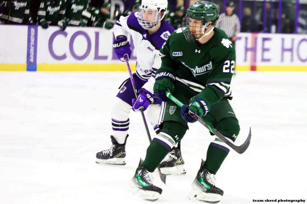 Mercyhurst University Lakers‘ graduate left wing Kyler Head(23) has a shoulder injury end his season of eligibility after just 6 games.