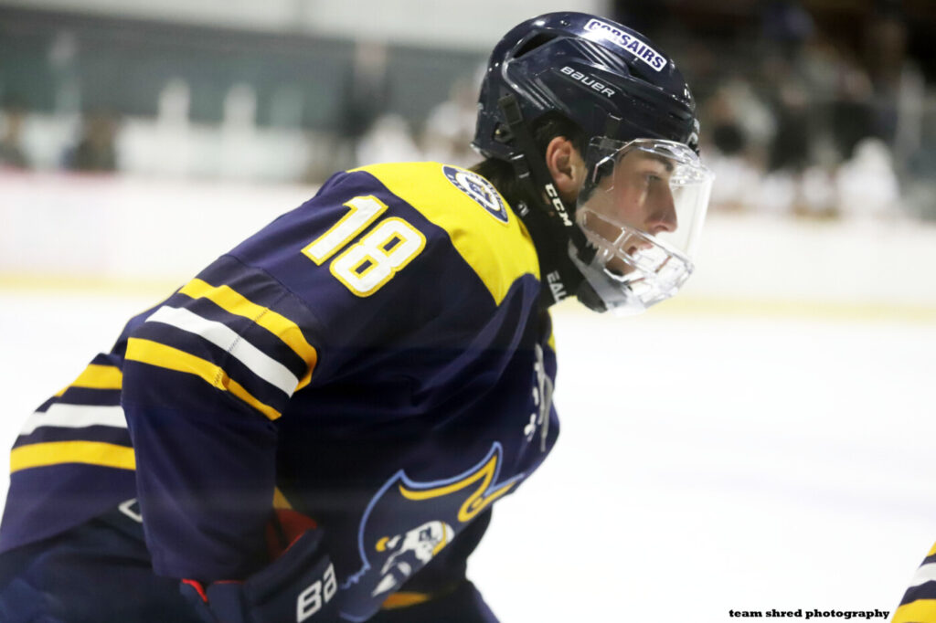 Bridgewater Bandits‘ 2nd year center Liam Fecteau(18) scored a junior best 17 goals and 15 assists in 45 EHL games that he takes to a 2025/2026 commit close to his Seekonk, MA home at UMASS-Dartmouth Corsairs.