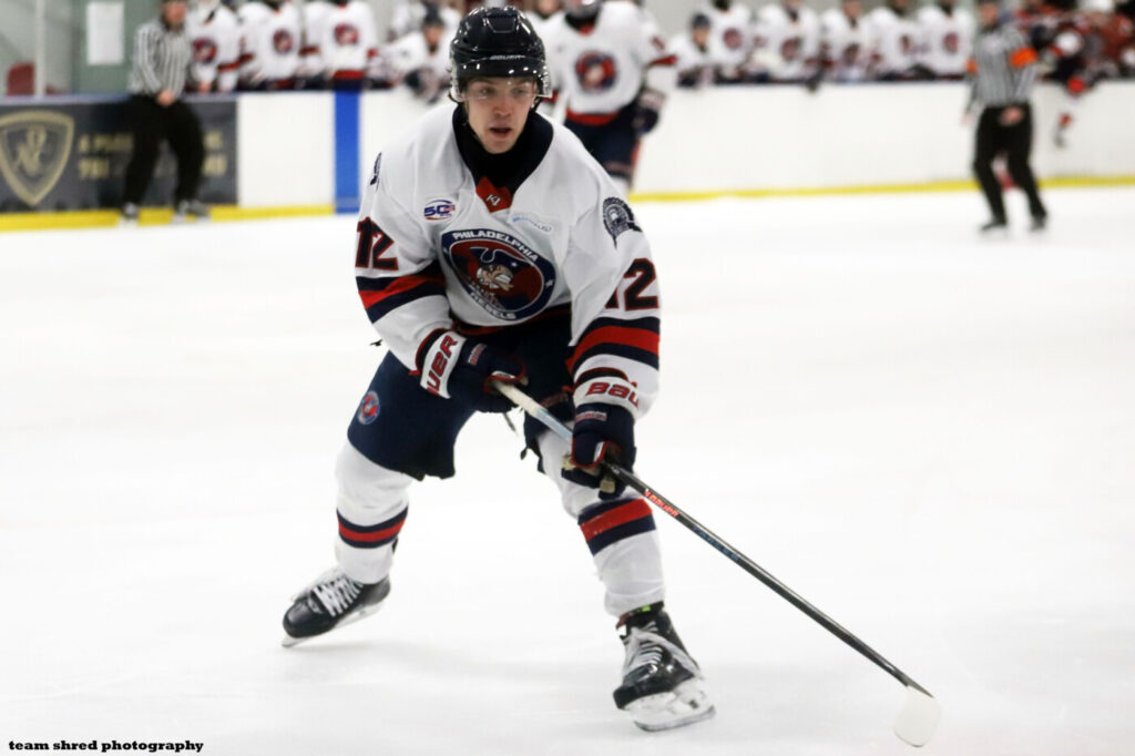 Philadelphia Jr. Rebels‘ 1st year, Lithuanian-born left wing Linas Dedinas(12) commits to Albertus Magnus College Falcons for 2025/2026.