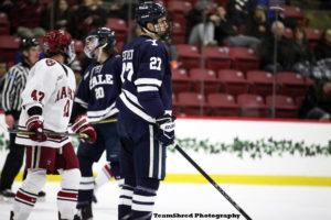He left 4 years at Yale University Bulldogs with a college career high 7 goals and 5 assists for 12 points in a playoff cut short 2019/2020, and was definitely a decent scorer at prep school, especially in his final year, where he popped the sheet with 24 goals and 31 assists in only 28 games.
