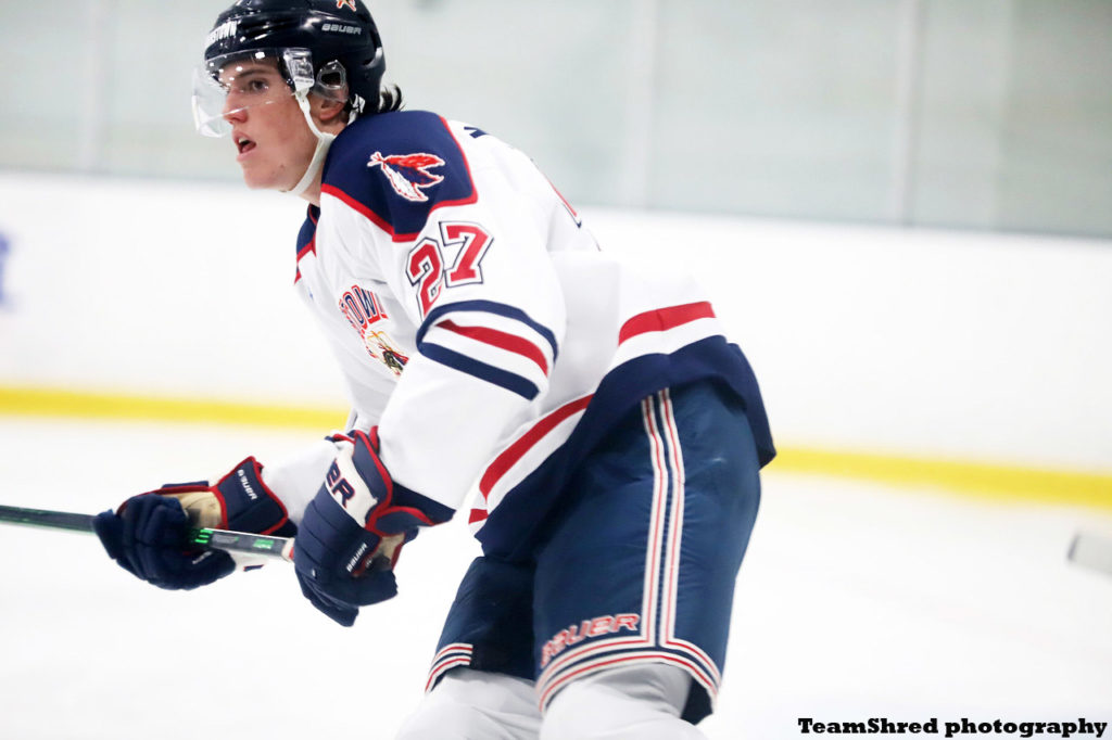 Holy Cross College Crusaders‘ 2022/2023 commit, Johnstown Tomahawks‘ 1st year defenseman Mack Oliphant(27) has 7 assists in 15 NAHL games to start his run in the league.