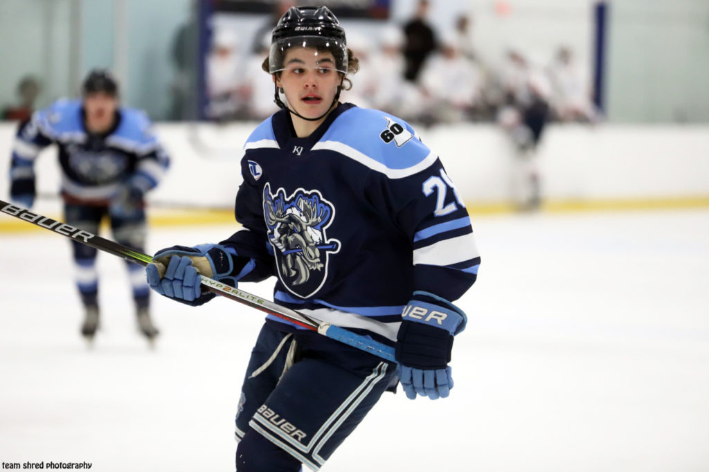 New Hampshire Mountain Kings‘ 2nd year NAHL right wing Matthew Hale(28) scored a junior best 12 goals and 18 assists, playing for essentially what is his home team, coming from Center Harbor and commits to another close by club, Plymouth State University Panthers for 2024/2025.