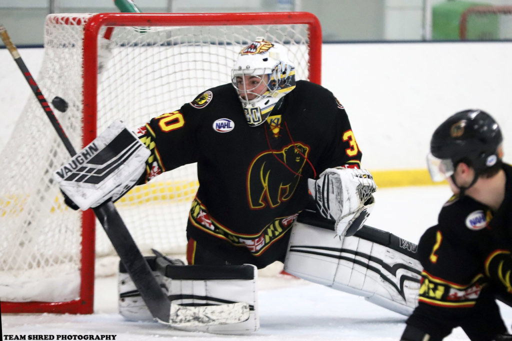 Michigan Tech University Huskies‘ 2022/2023 commit, goaltender Michael Morelli(30) takes a solid 2nd NAHL season with Maryland Black Bears to a big opportunity with a college team.