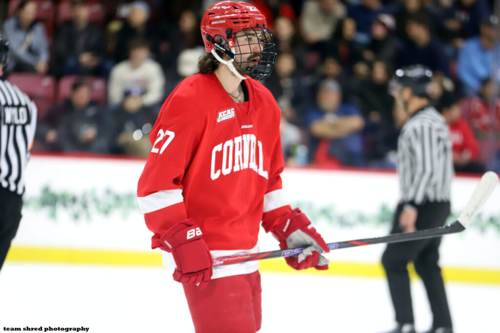 Cornell University Big Red senior defenseman Michael Suda(18) signed a 1st pro contract after tournament play with Savannah Ghost Pirates and scored a 1st ECHL goal in 6 games with a +2 rating to start his pro career.