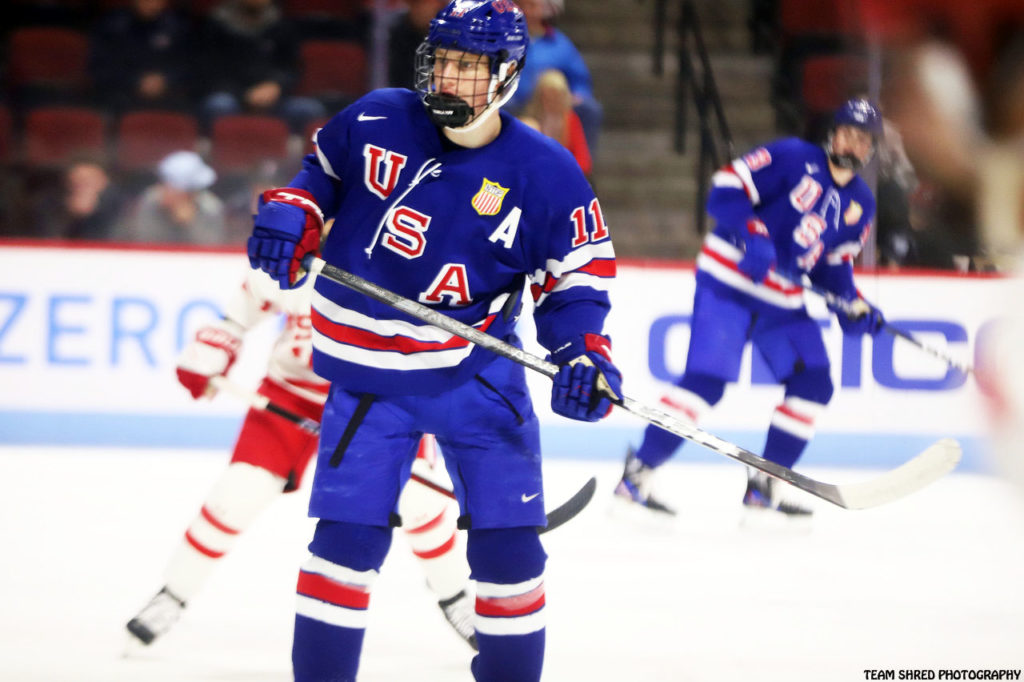 University Of Minnesota Golden Gophers‘ 2023/2024 commit, 2nd year USNTDP center Oliver Moore(11) is 2023 draft eligible.