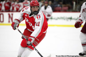 RPI Finnish-born junior forward Ottoville Leppanen(11) heads back home 0n a late loan to tier 3 league Suomi-sarja‘s S-Kiekko and has put up some stellar numbers banging home 7 goals and 5 assists in just 6 games, then moved onto the playoffs and produced similarly.