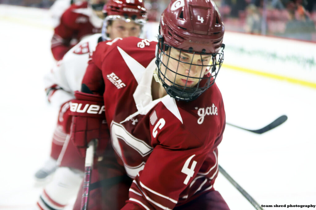 Colgate University Raiders‘ graduate, captain defenseman Reid Irwin(43) scored a new college best 6 goals and 17 points in 32 games last season, which he took to a 1st pro contract with Wichita Thunder and scored a 1st ECHL goal and assist in 9 games.