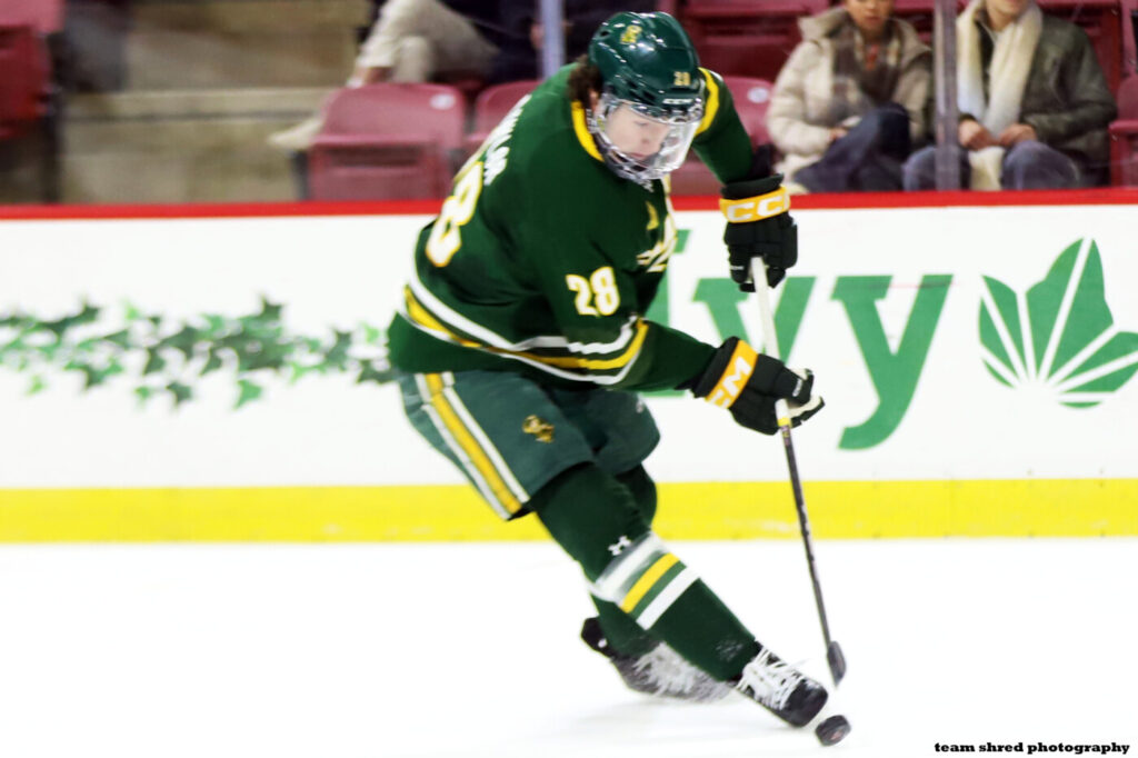 Clarkson University Golden Knights‘ junior right wing Ryan Taylor(22) is maybe not scoring as well as he would like, so enters the transfer portal and will join Atlantic Hockey rivals, Robert Morris University Colonials, as a senior in 2025/2026.